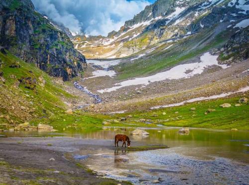 The Chandranahan is a glacial lake that is fed by snow melts of mountains that surround it. It is a small lake, However getting to it is an exciting experience and extremely fulfilling. We cross the stream that we saw just before the Litham campsite. We continue upstream on the trail to the top of the ridge. Then we walk towards the snout of the waterfall. After spending some time at the lake we turn back to the campsite. This short excursion will help you acclimatize for the trek ahead.