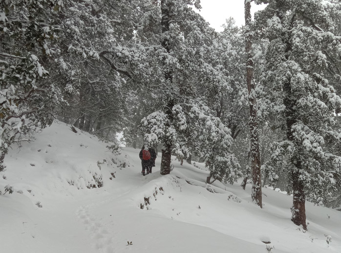After reaching Pantwari around noon, we will have lunch and begin the trek. The hike starts on a cemented trail before transitioning into a rocky path. Along the way, you’ll pass water sources, terrace farmlands, and the eco-tourism site of 'Goat Village.'